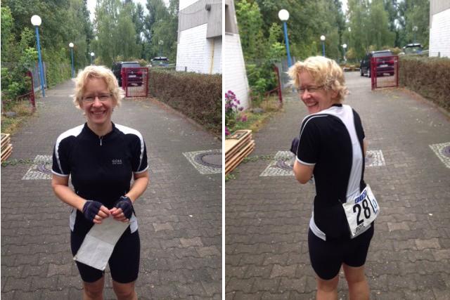 Wir haben uns mit One-Way-Fahrten ins Umland vorbereitet. Zielorte des Sommers: Fürstenberg, Neustrelitz, Prenzlau, Pasewalk, Uckermünde; Frankfurt an der Oder, Cottbus, Jüterbog, Calau; Dessau, Lutherstadt Wittenberg, Magdeburg. Alle klagen ständig über das Wetter, aber mir will scheinen, wir haben Glück: während ein, zwei Fahrten schauert es gelegentlich, ansonsten bleiben wir trocken. Einzig für den Sonntag der RTF ist Dauerregen vorhergesagt. Der uns dazu bringt, schon bei der morgendlichen Anfahrt mit dem Rad (Startort im Berliner Norden, 13 km entfernt) die Überschuhe überzustreifen. Wie gut, dass ich am Wochenende zuvor noch mit dem Coach zum Einkaufen war.