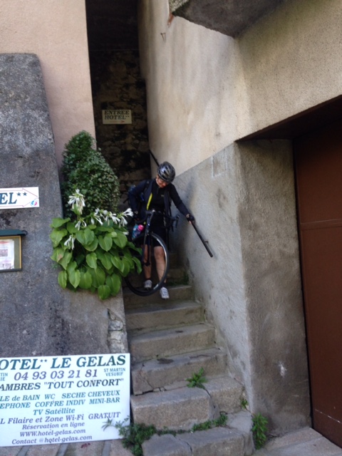 Nizza nähert sich schnell, die Gegend ist zunehmend verbaut, der Verkehr nimmt zu. Bei L’Escarène hat die Zivilisation uns wieder. Die meditative Stimmung, die sich in den vergangenen Tagen eingestellt hat, verliert sich in hektischem Kreisverkehr und Beton-Konstrukten.