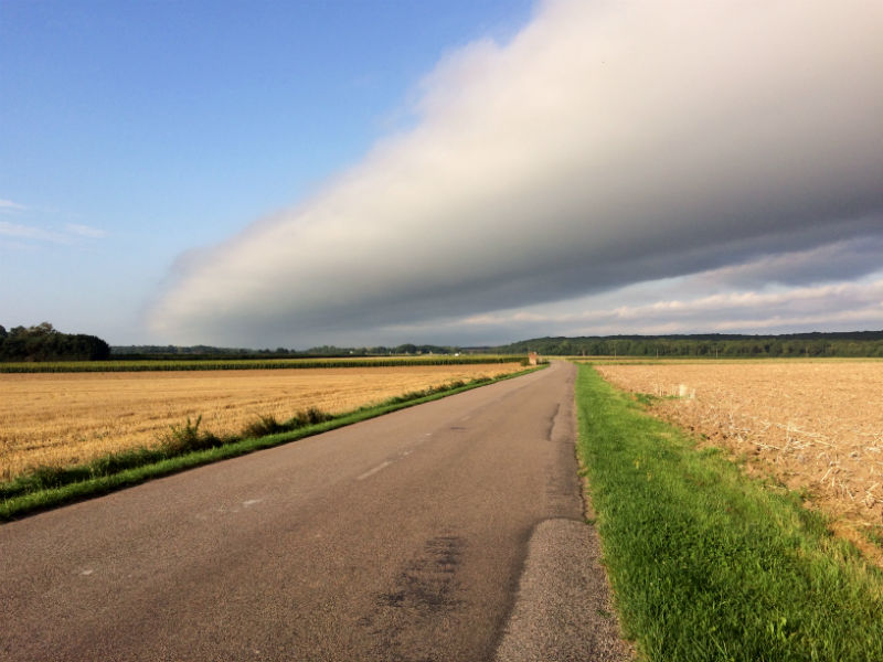 Einsame, schnurgerade Straßen, die sich hineinwinden in das Zentralmassiv, zwischen gepflegten Feldern hindurch, auf und ab. Eine so schöne Gegend, wenn man nicht immer wieder vom Gegenanstieg abgebremst würde. Rinn inne Welle …