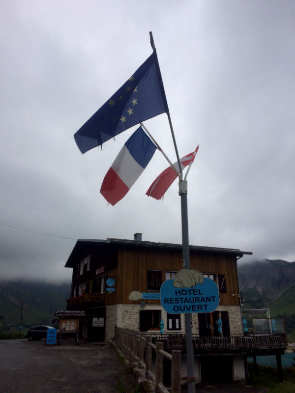 Oben überraschend kalt und ausgesetzt, Abfahrt nach Chambéry. Kaffee, Croissant, Brioche. Dann ein Supermarkt. Es ist Sonntag, Geschäfte haben womöglich nur vormittags offen. Alles beisammen. Auf nach Albertville!