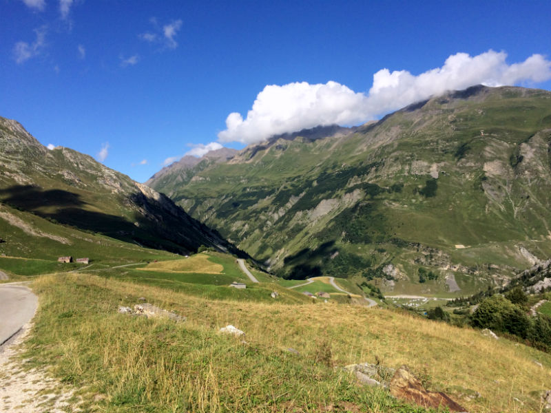 Abfahrt nach Bourg-Saint-Maurice. Fast ein bißchen gruselig finde ich die steil aufragenden, mächtigen Berge um mich herum, die so wenig Licht in die Täler lassen. Freue mich nach 3.500 Höhenmetern auf einen ruhigeren Tag.