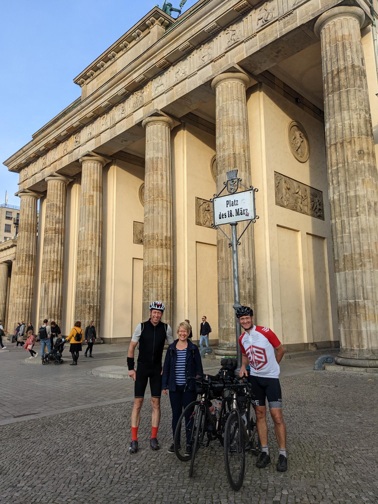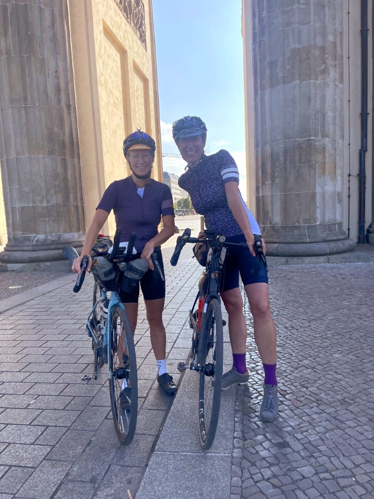 Fast noch schöner: das Warten am Brandenburger Tor auf diejenigen, die sich bei mir „angemeldet“ hatten. Der Duft von frischen Trikots am Start, die sirrende Aufbruchsstimmung. Oder auf der Durchfahrt, wenn sich aus der Menge der Fahrradpendler, die mit jeder Ampelphase am Brandenburger Tor vorbei rauscht, ein Mensch heraus schält, dessen Rhythmus auf etwas ganz anderes ausgelegt ist, die Schultern hochgezogen, der Blick in die Ferne gerichtet. Wie man sich da sofort erkennt. Dass überhaupt eine im Erzgebirge losradelt und zwei Tage später am Brandenburger Tor steht! Völliges Gänsehaut-Erlebnis.