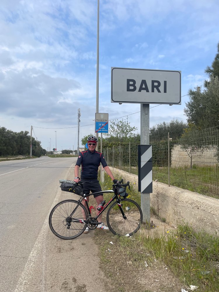 Die Straße nach Bari fällt die meiste Zeit leicht ab, erstaunlicherweise haben wir auch mal Rückenwind, es macht Spaß, hier entlang zu brausen. M. muss anhalten und pumpen. Und ich werde wehmütig, als die schöne Landschaft so davon zieht. Gleich muss ich dies gute Blech-Rad wieder abgeben.