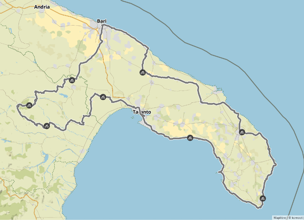 Die komplette Strecke (794 Km, 7.350 Hm) hier als Komoot-Collection.