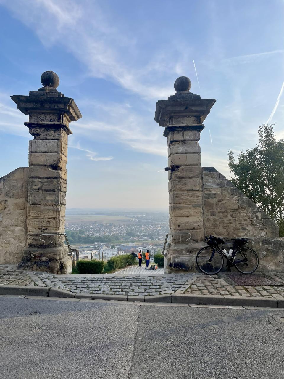 Der Parc de la Montagne de Reims ist vielleicht mein liebster Abschnitt. Es geht auf und ab, mit tollen Aussichten auf die Weinberge. Dann vorbei an den Anlagen der Rennstrecke Reims-Gueux. 60er Jahre Flair, der Schakal, Porschefahrer lassen sich ablichten, ich komme aus dem Knipsen nicht heraus.
