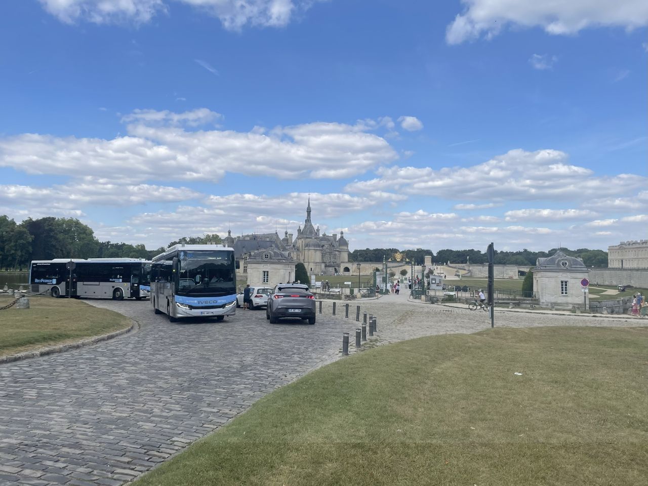 Dort schwant mir allmählich, dass flach nach Paris nicht unbedingt leicht nach Paris heißt. Senlis, ein mittelalterliches Städtchen, und eines der fiesesten Kopfsteinpflaster, das ich je erlebt habe. Schloss Chantilly, das nächste holprige Pflaster. Was ist das!? Die Alternative ist, das Rad über den Rasen zu zerren. Ich krieche entlang all der Chateaus, Schlösser, Herrenhäuser, die die Strecke nach Paris minutiös abklappert. Grandioses Sightseeing, grauenhaft zugleich.