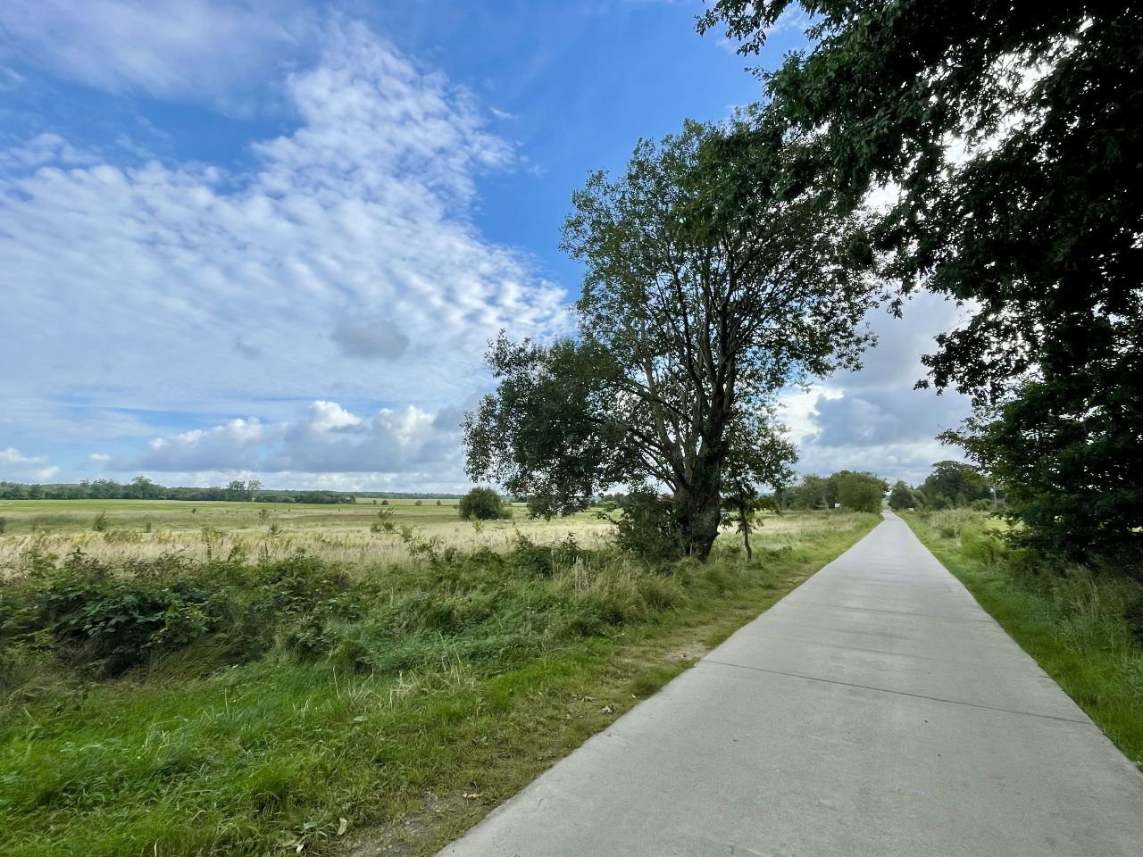 Schön ist auch der Weg über Land nach Ustka. Sanft geschottert, Blicke über die Landschaft. An der Unterkunft von vornherein die Auflage, die Räder draußen zu lassen (hatten die Kontakt zu unserem letzten Hotel, oder was?), in einem Unterstand hinter dem Haus, der uns nicht sehr vertrauenswürdig erscheint. Nebenan wirft einer ein Kabel aus dem ersten Stock nach unten, um sein Auto aufzuladen. Ob die Preise für die Zimmer da wohl mal so bleiben?