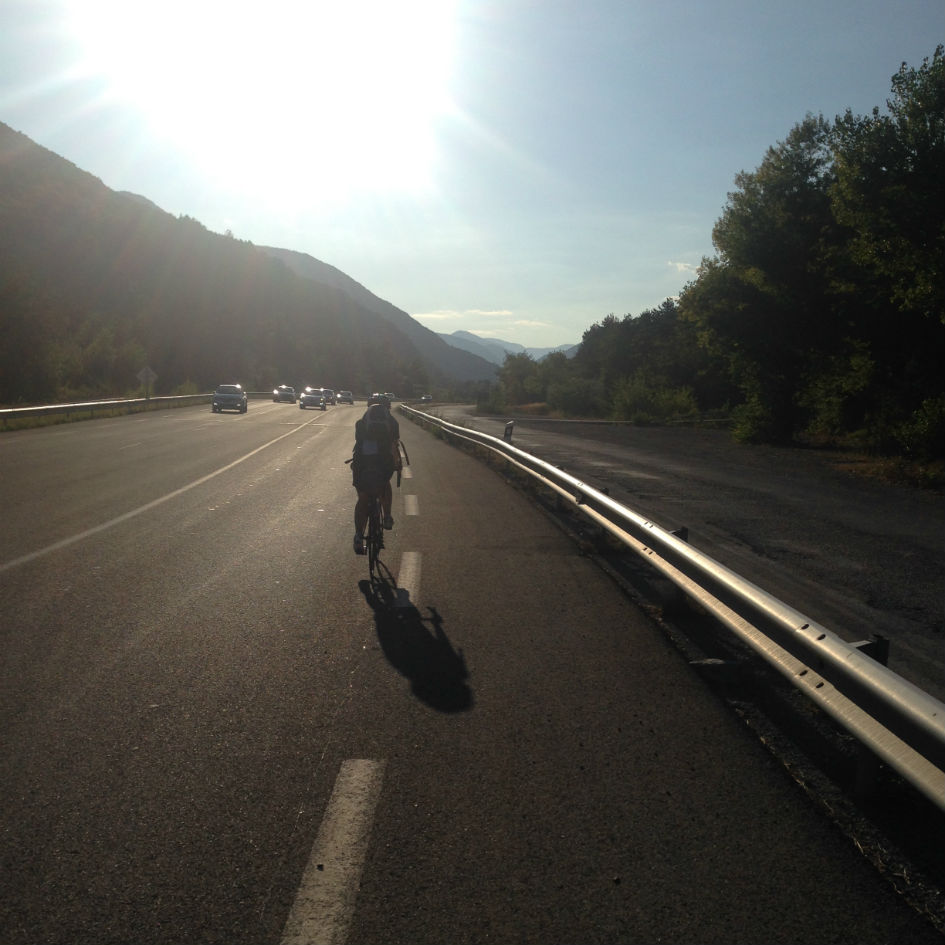 Wir sausen dahin. Angetrieben von der rasch verfliegenden Zeit. Gestern haben wir festgestellt, wie langsam wir in den Bergen vorankommen, ungeübt im Fahren von Pässen, beladen mit Rucksack und Saddle Pack. Heute liegt die längste und Höhenmeter-reichste Etappe unserer kleinen Rundfahrt durch die Französischen Seealpen vor uns.